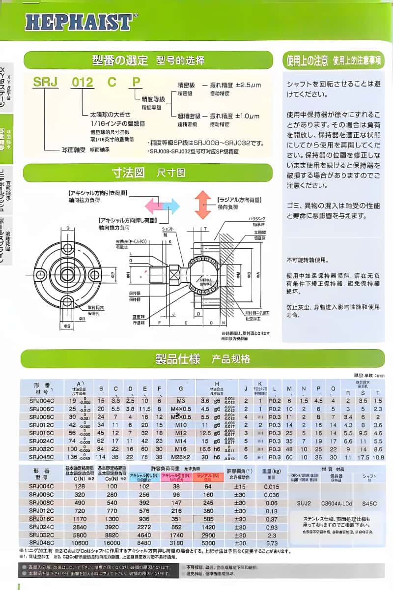 精密等級 SP 可用于 SRJ008 至 SRJ032 項目。